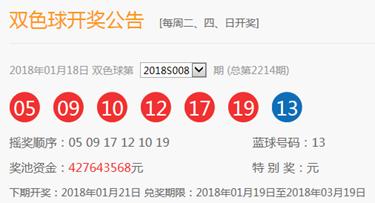 1月18日雙色球第2018008期開獎,搖出紅球號碼05、09、10、12、17、19;藍球則是搖出了大號奇數13。