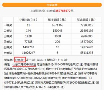 本期爆出的11注一等獎,被來自北京、遼寧、吉林湖北和廣東的彩友所斬獲!其中,北京彩友獨攬其中6注一等獎,拿下3942萬余元的巨額獎金,占據了當期一等獎的“半壁江山”,成為本期雙色球開獎的“最大贏家”!