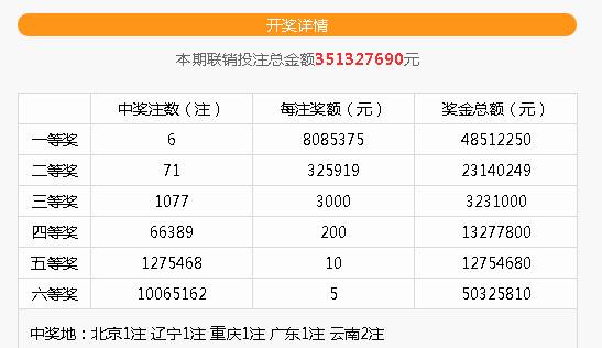 當(dāng)期還開(kāi)出71注單注獎(jiǎng)金金額高達(dá)32萬(wàn)余元的二等獎(jiǎng)和11408096注固定獎(jiǎng)。