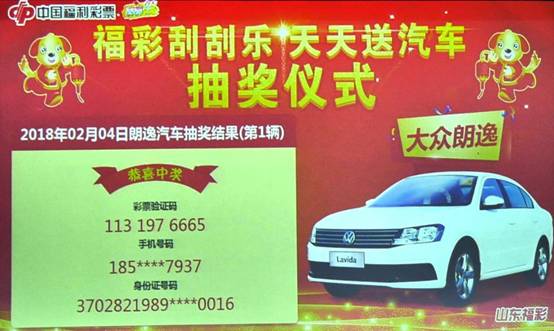 現(xiàn)將2018年 2月4日進(jìn)行的“福彩刮刮樂,天天送汽車”活動(dòng)大眾朗逸汽車抽獎(jiǎng)結(jié)果公告如下: