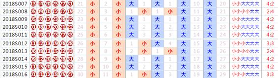 最近十期藍球大小(1-8為小,9-16為大)走勢如下:大大小小大大小小大大,近期小數連續出現,本期藍球可重點關注大數。