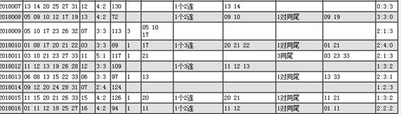 連號:上期兩連號開出一組,近十期一區連號一次,二區連號出現五次,三區連號沒有,本期可注意一組兩連碼。