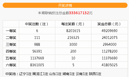 昨晚(2月27日),福彩雙色球第2018022期開獎,全國開出6注一等獎,單注獎金高達820萬余元!二等獎爆開111注,單注獎金也是不低,足足21萬余元!單期送獎1.4億元!
