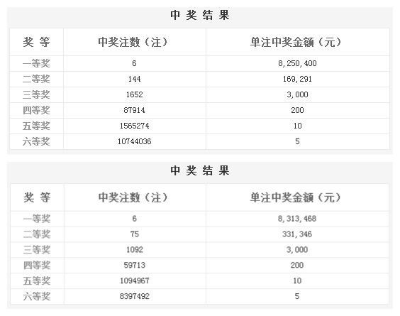 一等獎與第026期數量相同,再次開出6注,單注獎金825萬余元;然后從二等獎到六等獎,第027期開獎數量明顯高于第026期,第027期二等獎開出144注,單注獎金16萬余元;固定獎開出了12398876注。