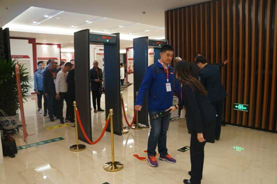 觀摩團成員在進入直播室前,有序地通過了安檢!
