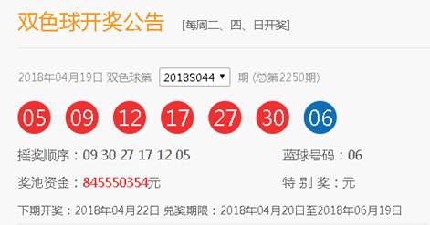 再看看為大家送來大獎的號碼,雙色球第2018044期開獎,紅球開出05 09 12 17 27 30,藍球開出遺漏10期的偶數06。