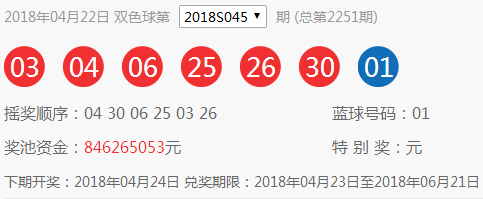 4月22日晚,雙色球迎來了第045期開獎,當(dāng)期開獎號碼令人眼前一亮。紅球開出03 04 06 25 26 30,藍(lán)球開出01。