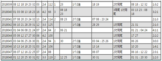 奇偶分析:上期奇偶比為3:3,本期注意奇偶變化不大,推薦關注奇偶比2:4或4:2。