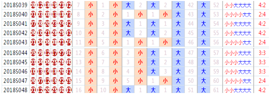 最近十期藍球大小(1-8為小,9-16為大)走勢如下:小大大大小小小小小小,近期小數連續開出,本期藍球可重點關注大數。