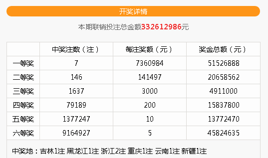 當(dāng)期還開(kāi)出10623000注固定獎(jiǎng),據(jù)統(tǒng)計(jì),雙色球第2018050期共送出獎(jiǎng)金1.52億元!