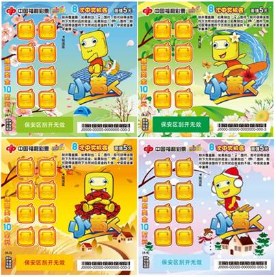 “小黃人”是以即開票銷售展示柜為主題設計的一款專題彩票,該款彩票一套四枚,以春夏秋冬四季景色作為背景,意為小黃人一年四季都在我們身邊。小黃人卡通形象俏皮活潑,讓人愛不釋手。該款彩票采用圖符即中玩法,非常好玩,頭獎10萬元。
