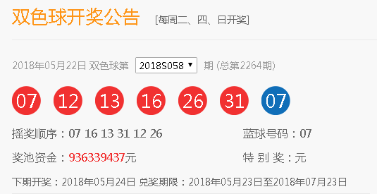 昨晚(5月22日),福彩雙色球第2018058期開獎,當期紅球開出07 12 13 16 26 31,藍球開出遺漏3期的奇數07。
