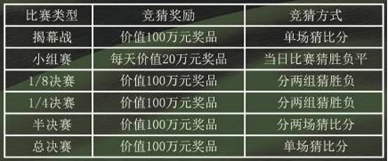 榮耀值可用于參與“揭幕戰(zhàn)競猜”、“小組賽競猜”、“1/8決賽競猜”、“1/4決賽競猜”、“半決賽競猜”和“冠軍競猜”等六個類型的比賽競猜,猜中相關(guān)比賽的結(jié)果,即可瓜分相應(yīng)的競猜獎勵,競猜獎勵總計價值800萬元!