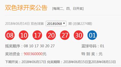 雙色球第2018068期開獎,搖出紅球號碼08、10、17、20、27、30,藍球則是搖出了最小號01。