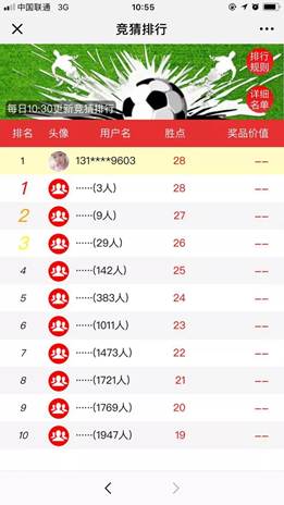最后提醒大家在關注自己當天是否猜中的時候,一定不要忘記看看自己在競猜排行榜中的排名,排名前十的用戶都會有豐富的獎品哦!(來源:福彩刮刮樂)