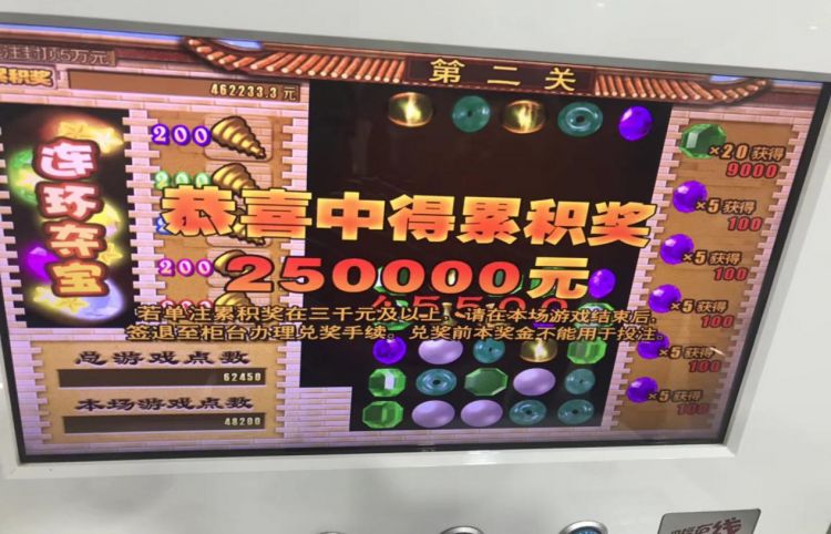 工作人員介紹,6月8日下午,8號投注機在連環(huán)奪寶游戲第三關(guān)中以單注200分5注全選中得24顆紅寶石,幸運彩友林先生(化姓)喜中全國累積大獎25萬元。