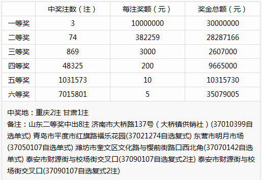 面對如此“刁鉆”的藍(lán)球號碼,彩友們也是大展身手,3注一等獎被重慶和甘肅的彩友拿下,其中重慶獨攬2注。