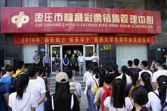 8月24日上午,2018年“福彩助力 情系學子”貧困大學生助學金發放儀式在棗莊市福彩中心一樓兌獎廳門前舉行。市民政局、市婦聯、市福彩中心有關領導以及新聞媒體記者出席儀式,來自各區(市)的49名受助貧困大學生受到資助。