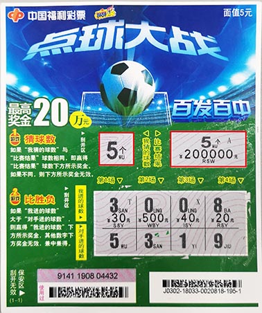 這不,在9月5日上午,淄博彩友侯女士(化姓)在逛街購物時,心血來潮買了一張5元的“點球大戰”彩票,竟意外刮中頭獎20萬元。