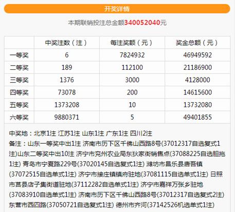 當期斬獲一等獎的還有北京、江蘇、廣東和四川4個省市的幸運彩友。