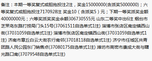 咱們山東彩友當(dāng)期也是實(shí)力非凡,拿下了65注二等獎(jiǎng)中的6注,單注獎(jiǎng)金高達(dá)36萬(wàn)余元。中獎(jiǎng)地市分別是煙臺(tái)、淄博、濟(jì)南、濟(jì)寧和濰坊5個(gè)地市。