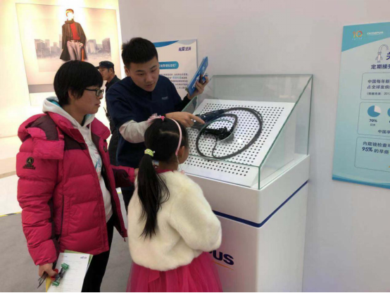 在“三早”展區中,奧林巴斯為泉城的市民們帶來了目前最先進的腸胃鏡檢查設備,包括EVIS LUCERA ELITE電子胃鏡GIF-H290、GIF-HQ290及GIF-XP260N三款產品。為參觀者們提供了一個近距離體驗、了解胃鏡檢查的機會。這些平時只能在醫院見到的專業醫療儀器,吸引觀眾們紛紛上前近距離觀看并親手操作,感受專業醫療設備的精密,并且對奧林巴斯胃鏡產品擁有的柔軟、超細外徑等特點留下了深刻印象。