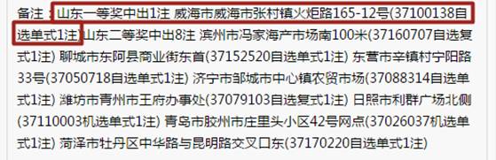 大獎的幸運誕生地為威海市張村鎮火炬路165-12號37100138號投注站。據檢索,這注625萬的一等獎出自一張10元5注的自選單式彩票。幸運得主通過10元拿下了625萬獎!