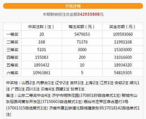 當(dāng)期井噴的20注一等獎,分別花落山西、內(nèi)蒙古、遼寧、吉林、上海、江蘇、安徽、湖北、廣西、四川、云南、西藏和甘肅等13個省市,其中云南彩友獨攬4注,安徽、上海、遼寧、山西各中出2注,其它地區(qū)均為1注。