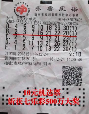 七樂彩第2018151期開獎(jiǎng),全國僅中出1注一等獎(jiǎng),大獎(jiǎng)花落濰坊安丘市37078405號福彩站,獎(jiǎng)金高達(dá)500萬元。張先生幸運(yùn)加身,憑借一張10元機(jī)選票將全國唯一的一注七樂彩一等獎(jiǎng)收入囊中。