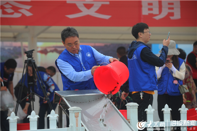 在活動啟動儀式上,山東省農(nóng)業(yè)農(nóng)村廳張建東副廳長表示,養(yǎng)護(hù)水生生物資源、促進(jìn)生態(tài)文明建設(shè)是當(dāng)今世界一致倡導(dǎo)的共同理念,是踐行綠色發(fā)展、促進(jìn)人魚水和諧共生的重要舉措,同時呼吁社會各界積極行動起來,同心攜手、共同參與,同筑生態(tài)之基,同走發(fā)展之路,努力把“放魚養(yǎng)水”打造成為“全民共知”和“自覺行動”。